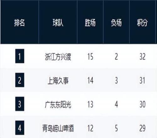 浙江广厦以六连胜的强势表现稳坐榜首,球队状态与伤病情况均保持良好,展现出冠军相。上海队凭借三连胜巩固第二位置,紧咬广厦不放,随着李添荣的伤愈复出,其实力将进一步增强。广厦和青岛虽本轮双双失利,但仍能稳住三四名席位,不过青岛本赛季的惊喜表现值得关注,其攻守化学反应堪称联盟典范。
