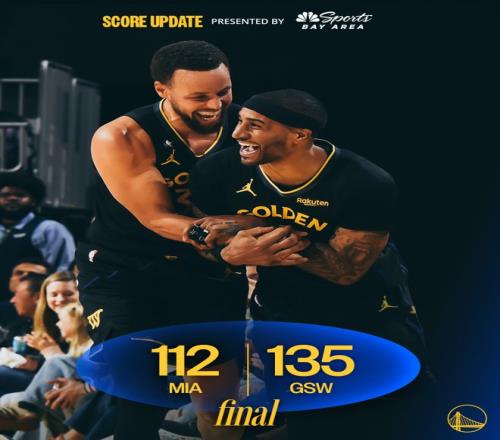 在波杰连续命中两个三分打停热火,库里起身为波杰庆祝了,热火队也放弃比赛换全替补了,库里末节3分钟打卡,全场比赛仅仅出战27分48秒,13中6,三分10中5,拿到19分11助攻3篮板3失误,命中率46.7%,三分命中率50%,正负值+3。