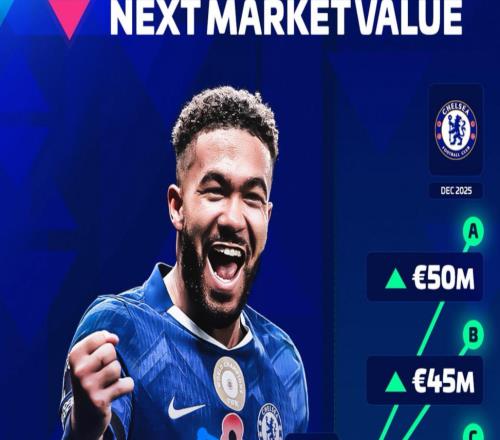 德转将在12月9日对英超球员的身价进行更新,今日德转预热切尔西后卫里斯-詹姆斯身价,最低涨至4000万欧,最高涨至...
