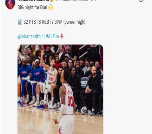 北京时间1月19日,NBA常规赛,火箭119-110鹈鹕。火箭队小贾巴里7记三分32分8板,申京21分8板4助5断,阿门20分8板6助...